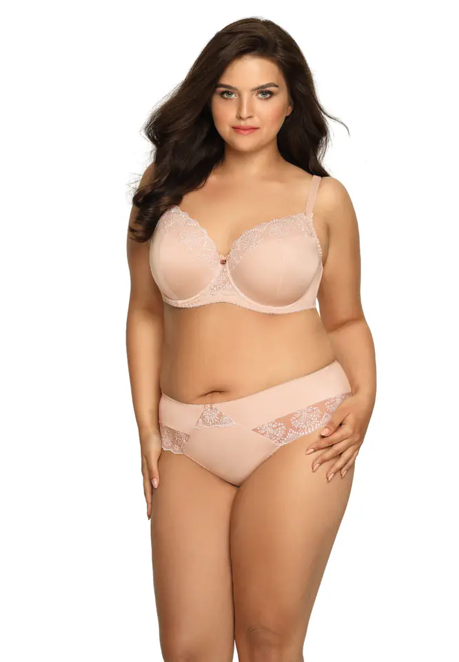 The ethereal and classic full-cup AV 1924 has been designed with the unique needs of women in mind. Thanks to the perfect adhesion to the body, the bra perfectly collects and supports the bust. Breathable, soft materials, unique construction and delicate finish ensure full comfort of use. The bra is made of high quality knitwear, reinforced with foam and lined on the inside with cotton and stunning embroidery. The sophisticated decoration of the model is an embroidered bridge with a bow and a gold logged pendant. Bacons made of elastic tulle. Straps are not detachable, their width depends on the size. Airframe K-924.