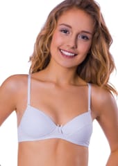 Biustonosz dla nastolatek z wyjątkowo miękkiej bawełny z dodatkiem elastanu, jednolity. Miseczki delikatnie usztywnione gąbeczką, bez fiszbin.