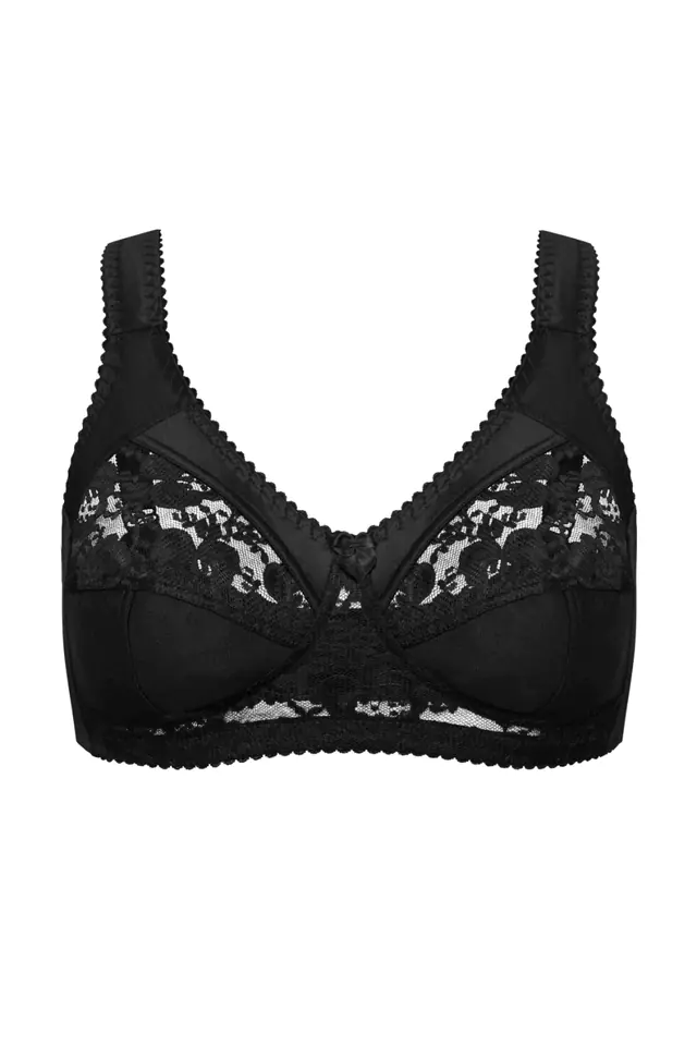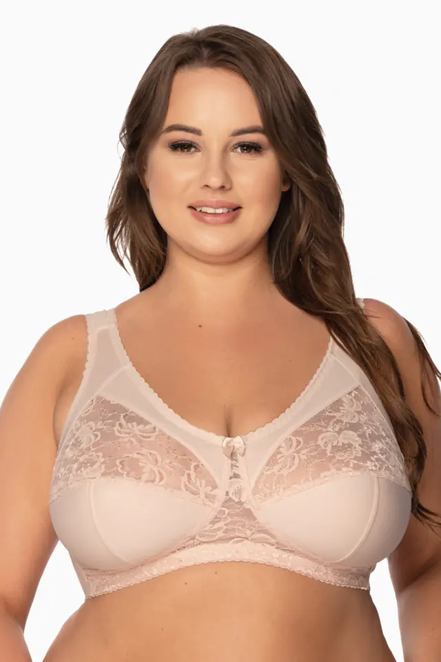 Soft model Melody without underwire and stiffeners. The heavily built-up construction with a high center gives the breasts a beautiful natural shape. The upper part of the cup is made of elastic lace. The model is aimed mainly at women who are supporters of naturally maintained breasts. The availability of large circuits, built-in model, bust does not fall out of the cups, wide rubbers do not dig into the body, straps widened, reinforced with corset foam, do not dig into the body, no side underwire, the circumference flexibly adapts to the body. Construction: Soft S26.