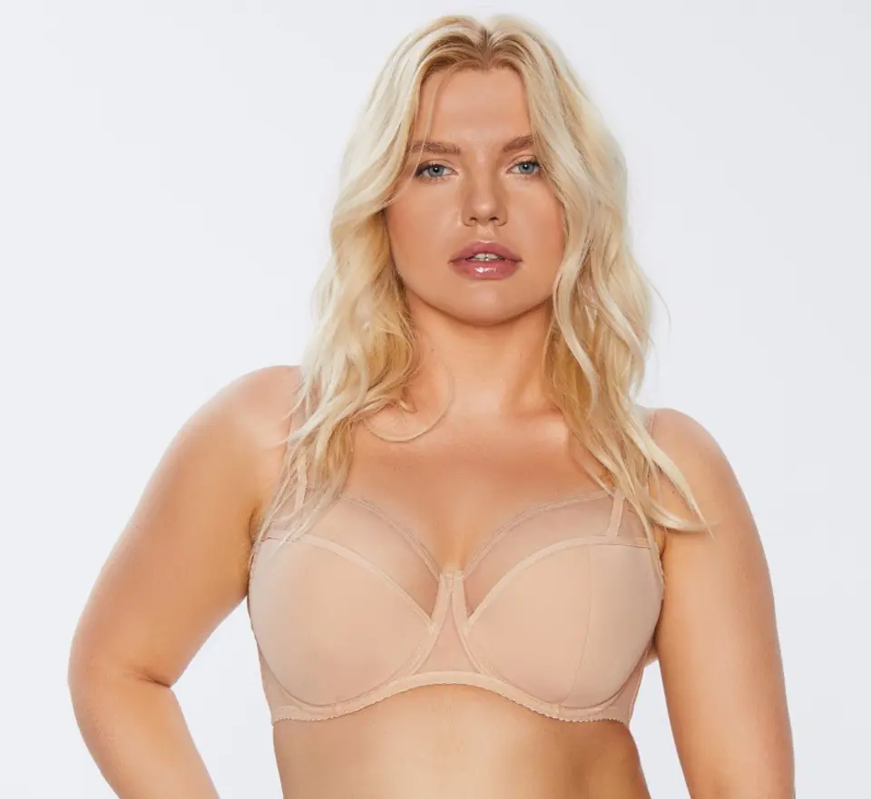 A bra chosen by customers who value fit. The upper part of the cup masks the asymmetry, adapting to both breast sizes. A design that responds to the needs not only through an extraordinary design, but also a side collection panel that collects the breasts and directs them upwards. Shape C wires will make the bra move with your body, and you will feel what "second skin" means and you will not want to part with it. Your comfort is our priority! Key features: - made of tulle and knitwear, - wider straps, reinforced with foam prevent pressure on the shoulders, - additional stabilization is provided by knitted sides, - side, vertical whalebones prevent distortion of the fabric, - three-step fastening on a double, wide hook.