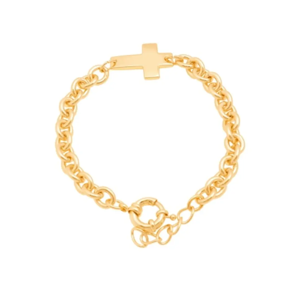 Bracelet made of massive chain with a cross. Bracelet length 19cm + extension 3cm. Cross size: length 2.5cm, width 1.5cm. Gold plated bracelet.