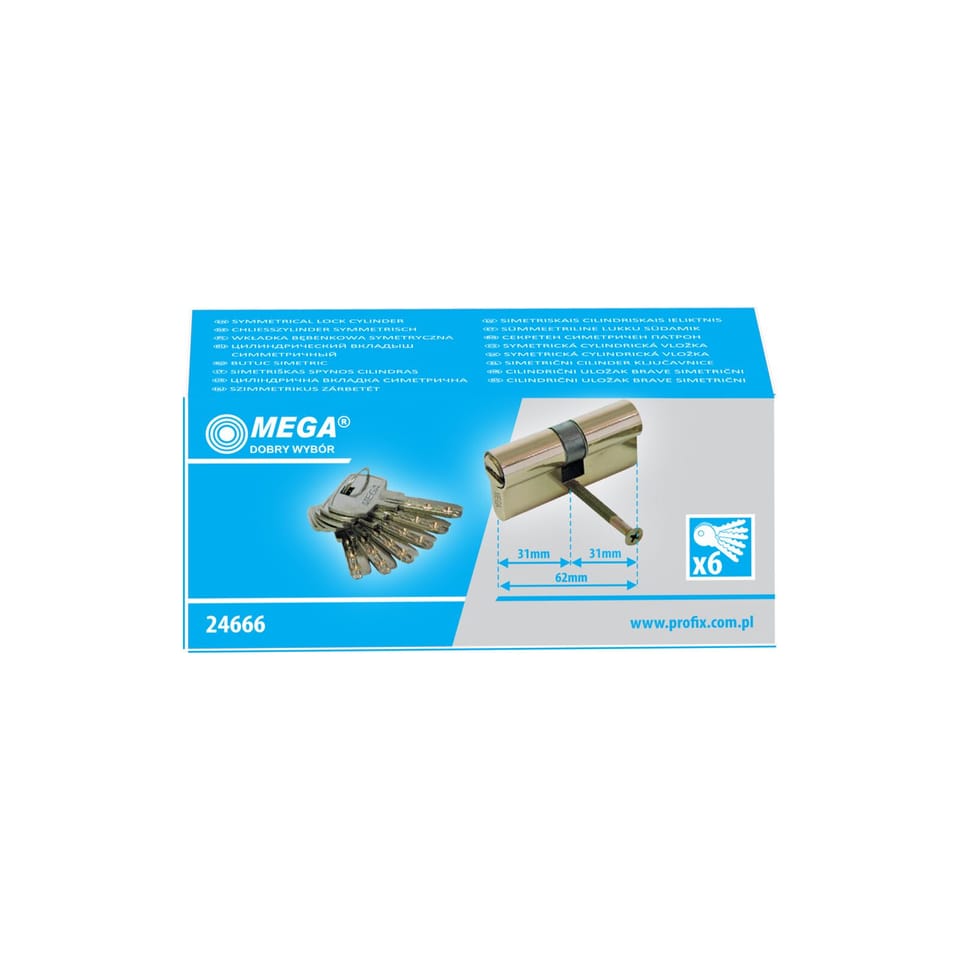24666 Wkładka bębenkowa mosiężna security symetryczna 62 mm karta, Mega
