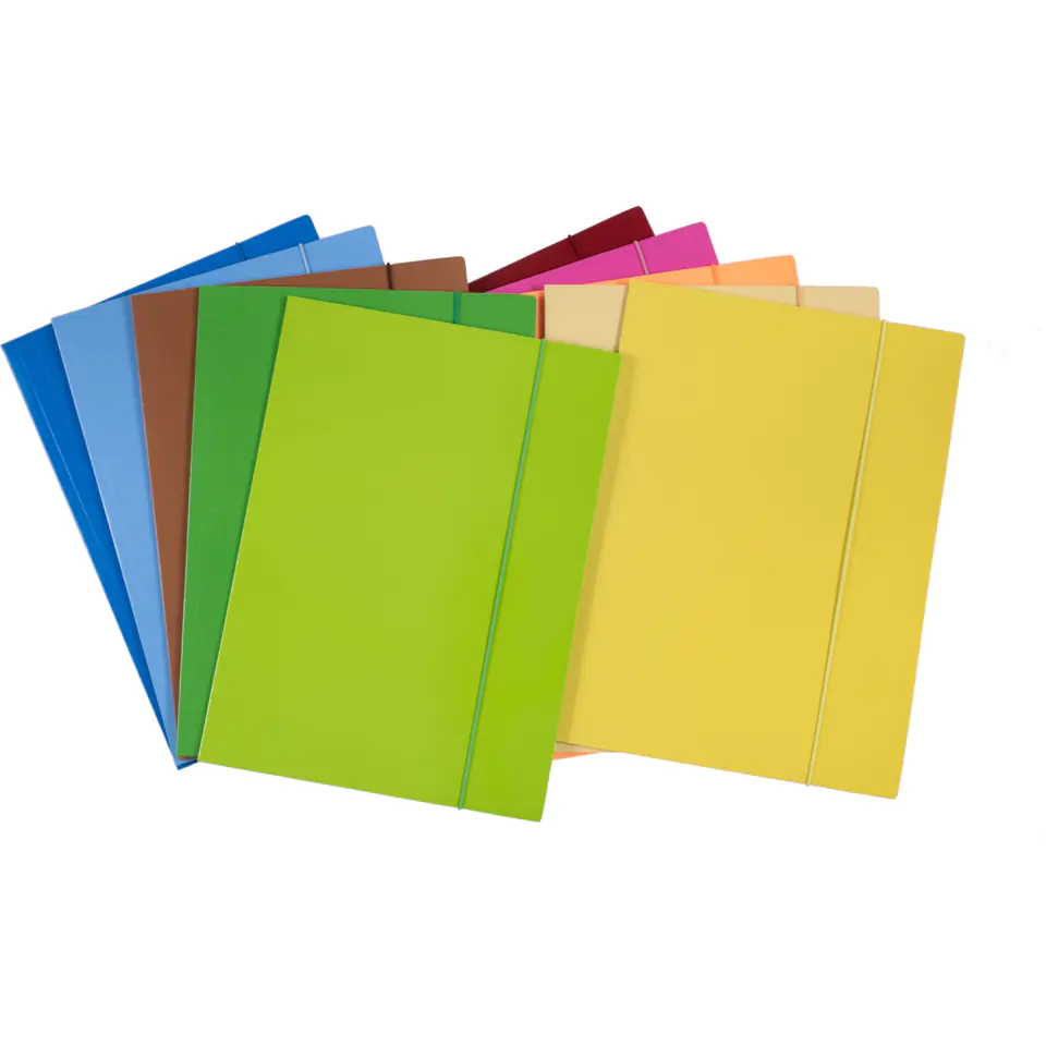 The single-colour folder MIX is made of coated paper with a weight of 300 g/m2. The paper is printed with classic color offset printing. In addition, the briefcase is varnished to refine and protect the external surface. Closed with an elastic band of the same color. The product consists of 10 folders in pastel colors: light brown, cream, light blue, light orange, ashen, light pink, turquoise, vanilla, light green, light yellow. Folder format 320x230 mm. The package (set) contains 10 folders in 10 different colors packed in heat-sealed foil. The above product is sold only in sets, i.e. 10 pieces.