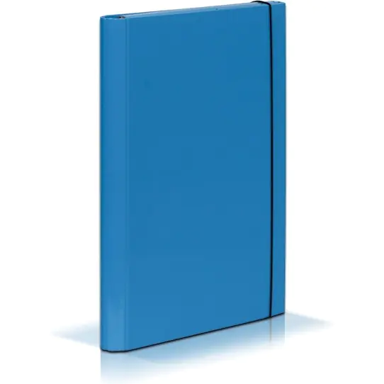 Made of hard 2mm cardboard coated with PP foil, it has a black endpaper made of high quality raw material, closed with an elastic band, innovative color range, spine width 4 cm, color: light blue.