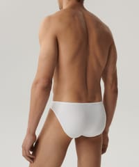 Slipy męskie mini pakowane po 3 sztuki. Wysoko podkrojone wokół ud i mają niską talię wykończoną ledwie wyczuwalną gumą tunelową. Wykonane są z miękkiej w dotyku bawełny połączonej z elastanem.