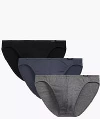 Slipy męskie mini pakowane po 3 sztuki. Wysoko podkrojone wokół ud i mają niską talię wykończoną ledwie wyczuwalną gumą tunelową. Wykonane są z miękkiej w dotyku bawełny połączonej z elastanem.