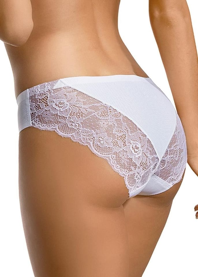 Great, very feminine women's briefs made of elastic, silky to the touch fabric with a micromesh structure. Trimmed with lace on the buttocks. Sensual, practical and perfect for everyday use. The product is packed in a beautiful, decorative box. Composition: 85% polyamide, 15% elastane.