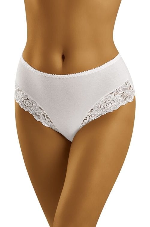 Great panties, perfect for any woman who loves cotton. A model with a classic cut made entirely of soft and pleasant knitwear. On the sides inserts of openwork lace, add an elegant character. fabric content: 90% cotton, 7% elastane, 3% polyamide.