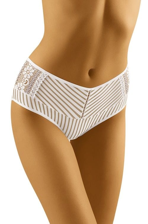 Spring proposal of the well-known Wolbar brand - sophisticated briefs Eco-Pa. Made of impressive fabric with a stripe motif, slightly transparent, subtly modeling the upper parts of the body (at the top the pattern was used obliquely), with lace flowers on the sides. Feminine and comfortable! Composition: 83% polyamide, 17% elastane.