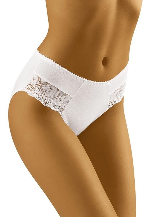 Classic briefs with a timeless cut. Made of high quality cotton, they allow the skin to breathe, perfectly adapt to the shape of the body. A slightly fuller cut perfectly covers up the imperfections of the figure and models the buttocks. Smooth, decorated on the sides with translucent lace. Very feminine, irreplaceable in every woman's wardrobe!
