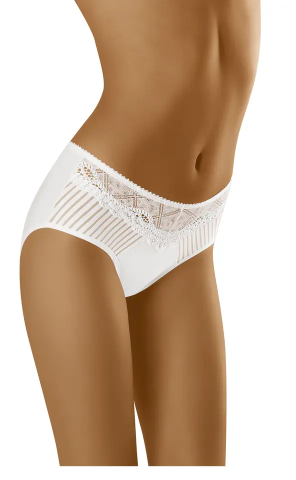 Very comfortable, cotton briefs decorated in the front part with an elegant composition of lace and stylish, ribbed knitwear. Higher cut. Composition: 90% cotton, 7% elastane, 3% polyamide.