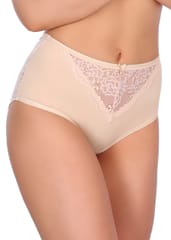 Wysokie figi damskie, zabudowane na biodrach. Wykonane z wysokogatunkowej, miękkiej bawełny. Przód i pośladki ozdobione efektowną, ażurową koronką. Skład: 95% bawełna, 5% elastan.