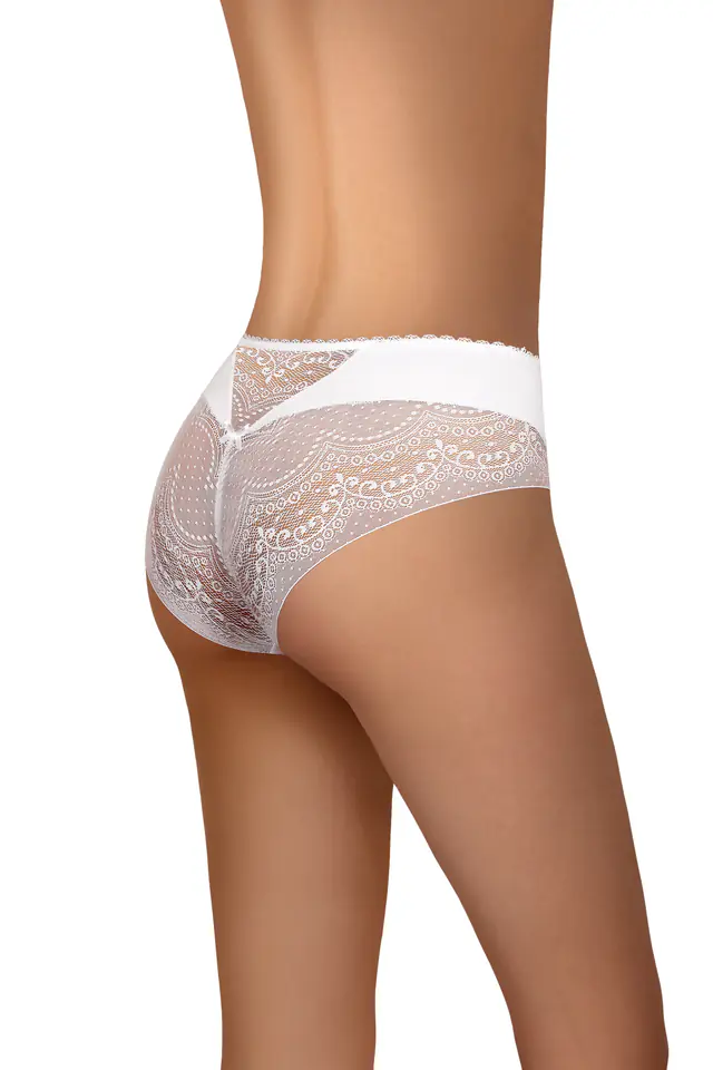 Elegant women's briefs are made of delicate microfiber. The back is made of impressive openwork lace. The front is decorated with openwork inserts and a small bow.