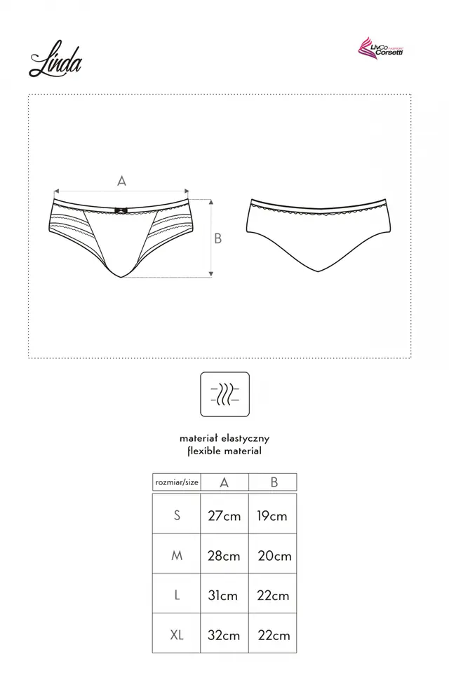 White panties, which cut slightly refer to comfortable shorts. Slightly higher on the sides, made of elastic fabric, which is complemented by small frills at the front. Composition: 90% polyamide, 10% elastane.