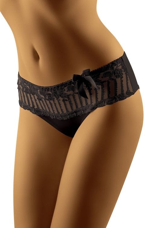 A subtle play of embroidered motifs with a comfortable, classic cut - Mela briefs. The front, thanks to the use of beautiful, transparent lace, looks "light" and delicate. Back smooth. Composition: 87% polyamide, 13% elastane.