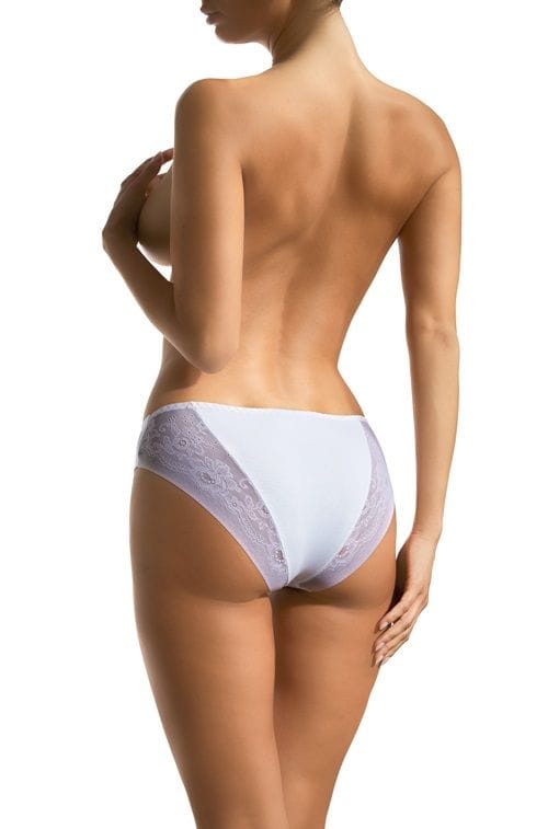 White briefs finished with beautiful lace in the buttocks area. Front smooth. Soft, elastic fabric. Comfortable and feminine cut. Perfect for every day. Composition: 92% cotton, 8% elastane.