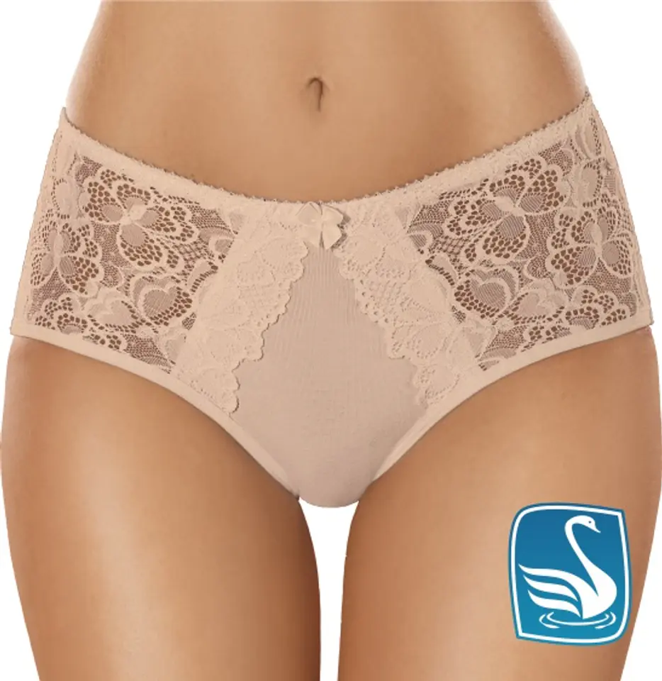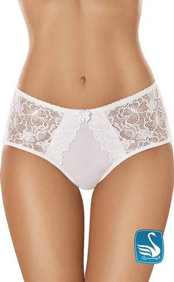Elegant, classic briefs made of cotton. Floral lace on the sides, which is a very nice accent here. At the top there is a small satin bow. Composition: 95% cotton, 5% elastane.