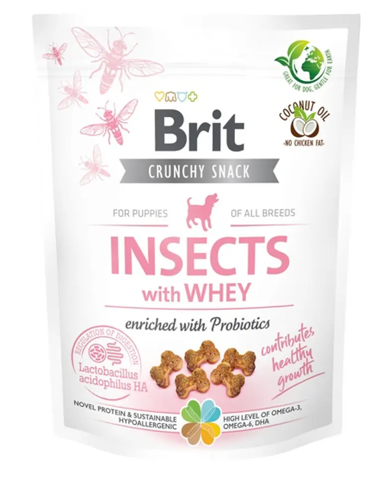 - Snack rich in insects and whey, with probiotics.