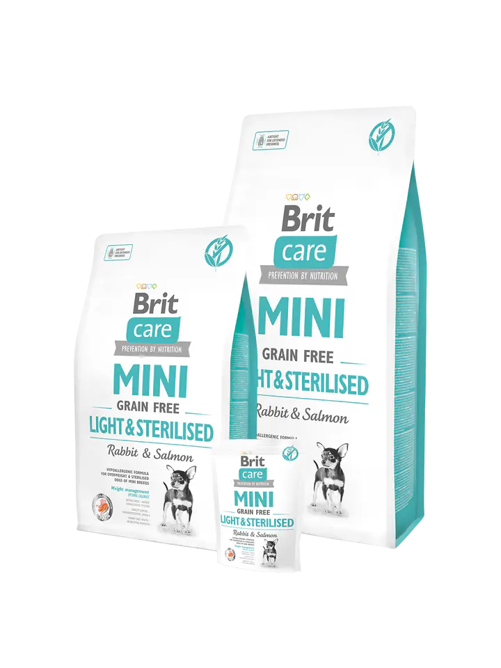 GRAIN-FREE HYPOALLERGENIC FORMULA WITH RABBIT AND SALMON FOR ADULT DOGS OF MINIATURE BREEDS WITH A PROBLEM OF OVERWEIGHT OR AFTER STERILIZATION CARE MINI GRAIN-FREE LIGHT&STERILISED