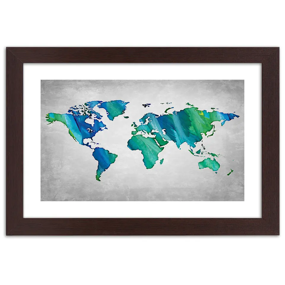 Bronze Frame Poster, Colorful World Map on Concrete Size 100x70