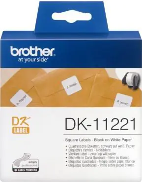 Brother's DK labels are designed for a variety of uses. DK-11221 is a square paper label with dimensions of 23x 23mm.