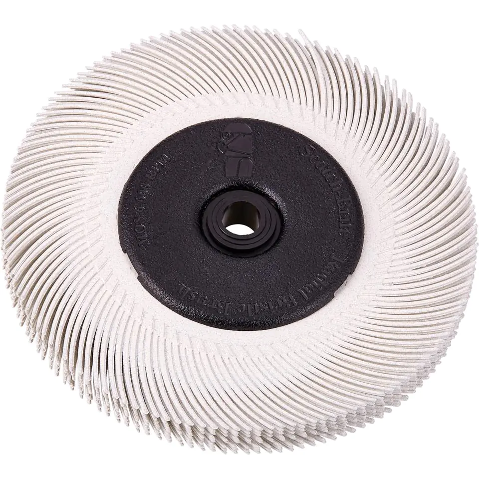 Made of simple slats, yellow, made of individual plastic segments enriched with ceramic abrasive grain. The segments are connected by a flange (Ø internal 25.4 mm). The unique design of Bristle products prevents contamination of the brush and guarantees a long service life while maintaining consistent performance. The flexibility of the individual fibres ensures a consistent finish quality, even on profiled surfaces.