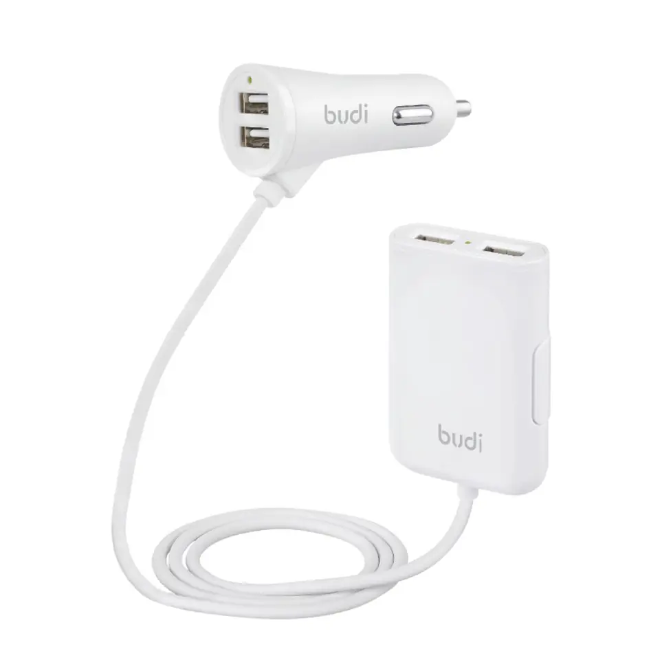 Budi - Car charger 4x USB, 41W + splitter on cable 1.8m White