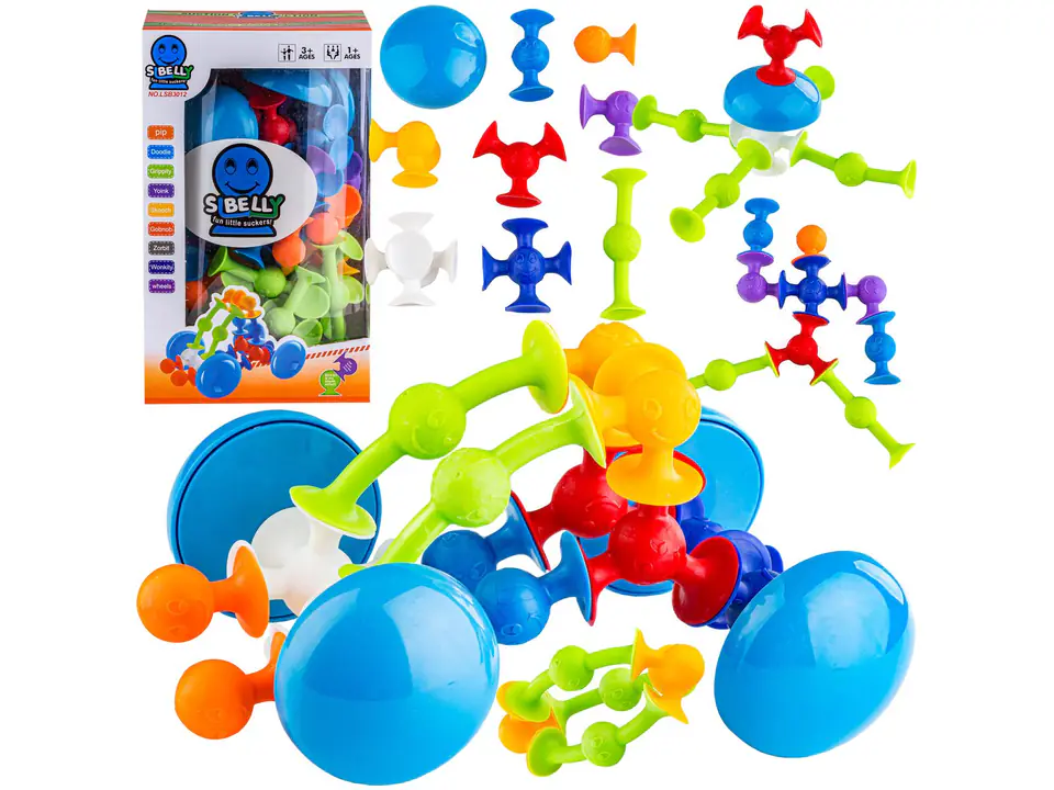 Silicone suction cups are a toy to design and build yourself. The set consists of many silicone elements - which allows you to freely build everything that the child comes up with. A toy that will transform a child into a little architect, stimulate the imagination and help develop construction skills. Suction cups are unusual blocks that can be combined both with each other and with another, smooth surface.