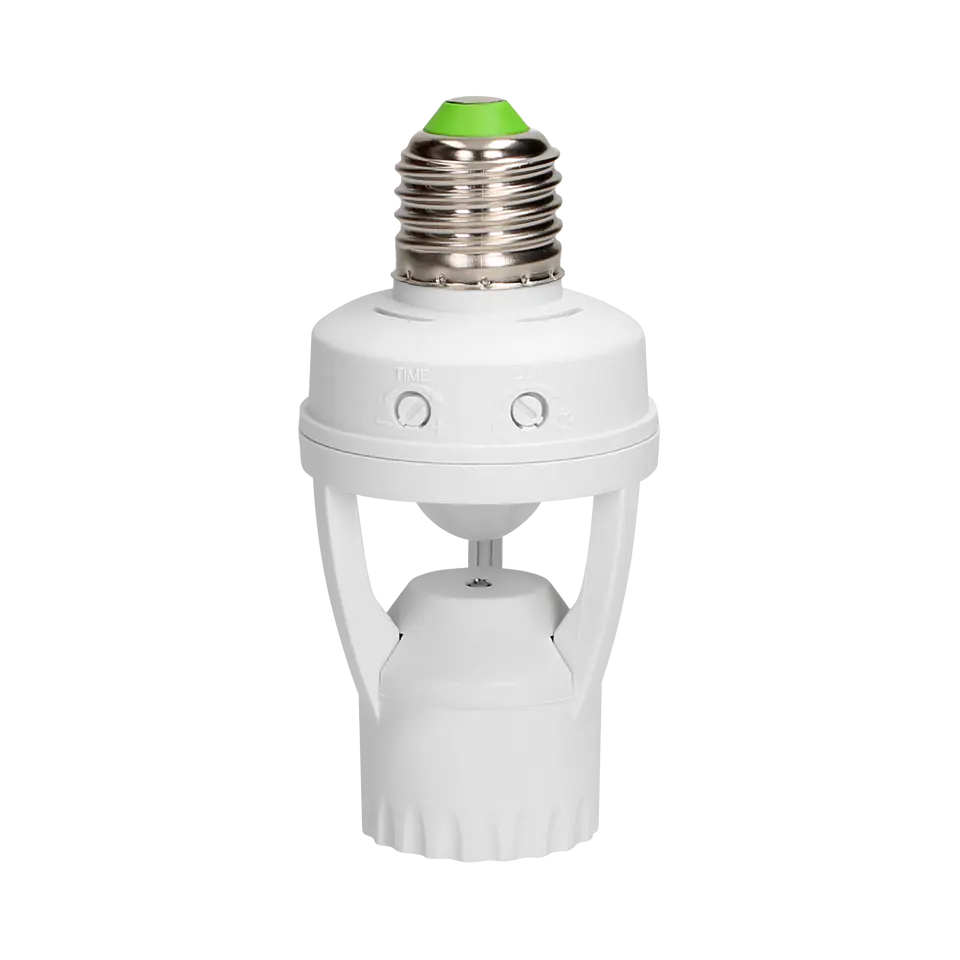 The socket is used to automatically control the lighting. Its task is to turn on and off the light source installed in the socket. No installation required. Potentiometers for adjustment: the lighting time of the light source after detecting motion and the sensitivity of light intensity.