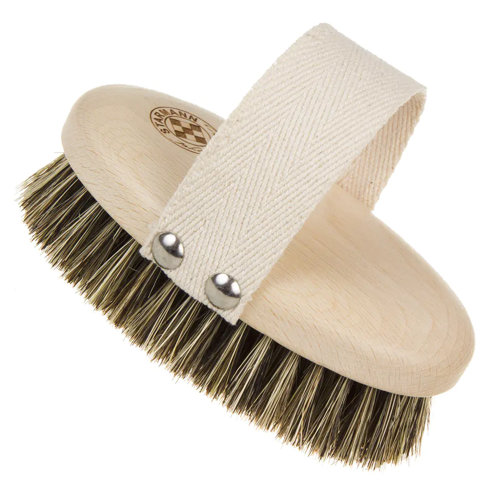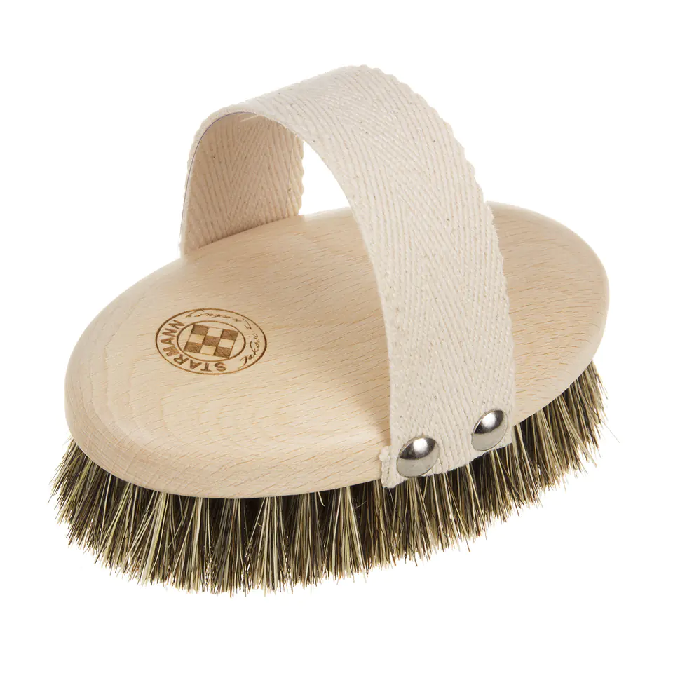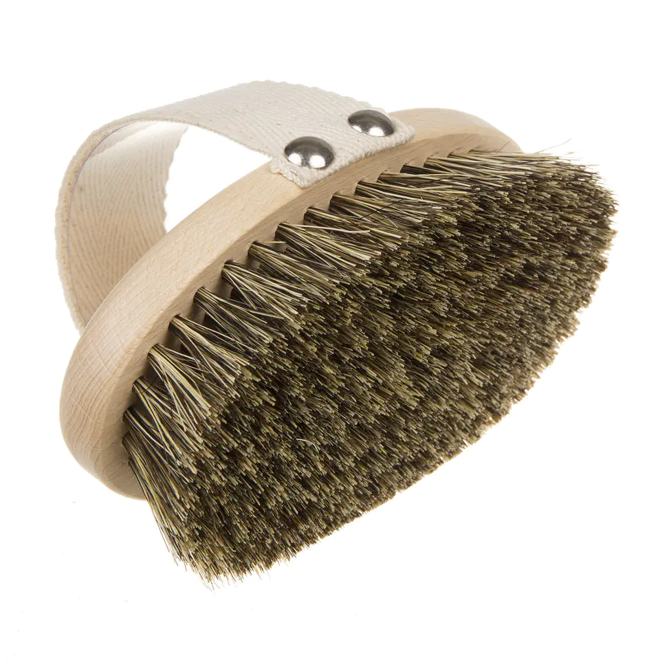 We recommend dry brushing before the shower, then the effect of exfoliation of the epidermis is better, we do not press the brush but gently massage the body with its weight.