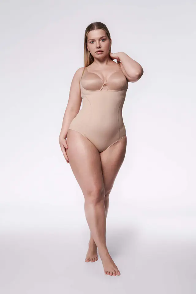 Discover the secret of the perfect figure! Innovative bodysuit completely invisible under clothing. Made in Invisible-line technology, without marked edges (seamless). Made of delicate, breathable material, it perfectly adapts to the figure. Special "panels" on the fabric correct the body. The body slims the waist, flattens the abdomen, lifts the buttocks. In the crotch adjustable clasp and cotton insert. Adjustable, detachable straps. You will receive silicone straps additionally in the set (they are free). Composition: 84% polyamide, 16% elastane.