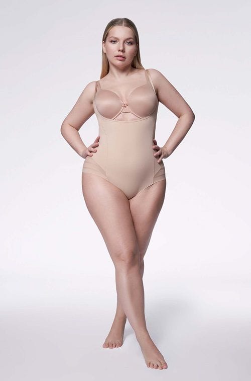 Rewelacyjny produkt - wyszczuplające body pod biust model 119, wykonane w technologii Invisible Line, właściwie niewidoczne pod ubraniem. O płaskim wykończeniu brzegów, elastyczne. Modeluje brzuch, talię i pośladki. Jest niezastąpione, jeśli chodzi o poprawę kształtów ciała. Wysokiej jakości dzianina umożliwia odprowadzanie wilgoci na zewnątrz i daje wysoki komfort noszenia. Na pośladkach seksowne wstawki z siateczki. Polski producent. Wysoka jakość. Skład: 84% poliamid, 16% elastan. W kroku bawełniana wstawka (bawełna 100%).