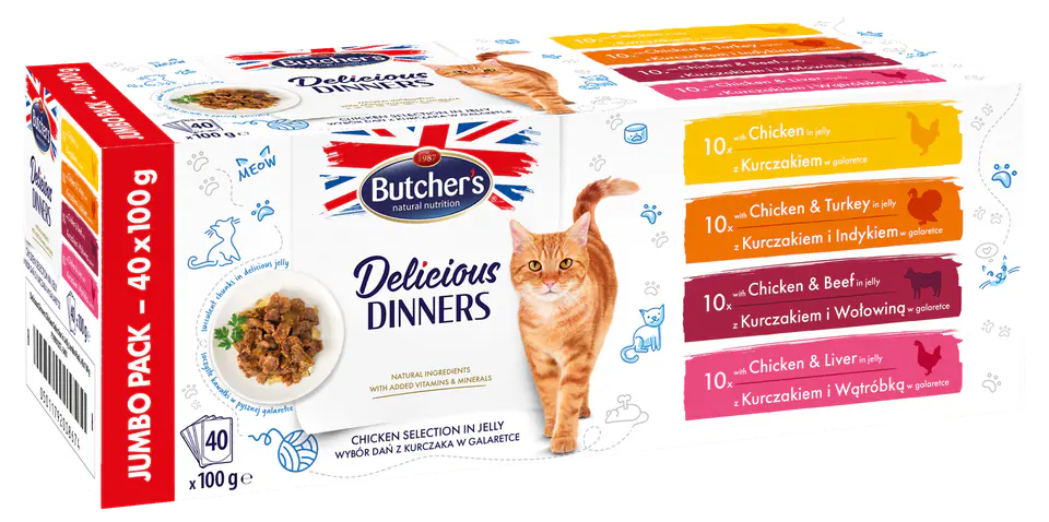 BUTCHER'S Delicious Dinners Jumbo Pack - wet cat food - 40 x 100g