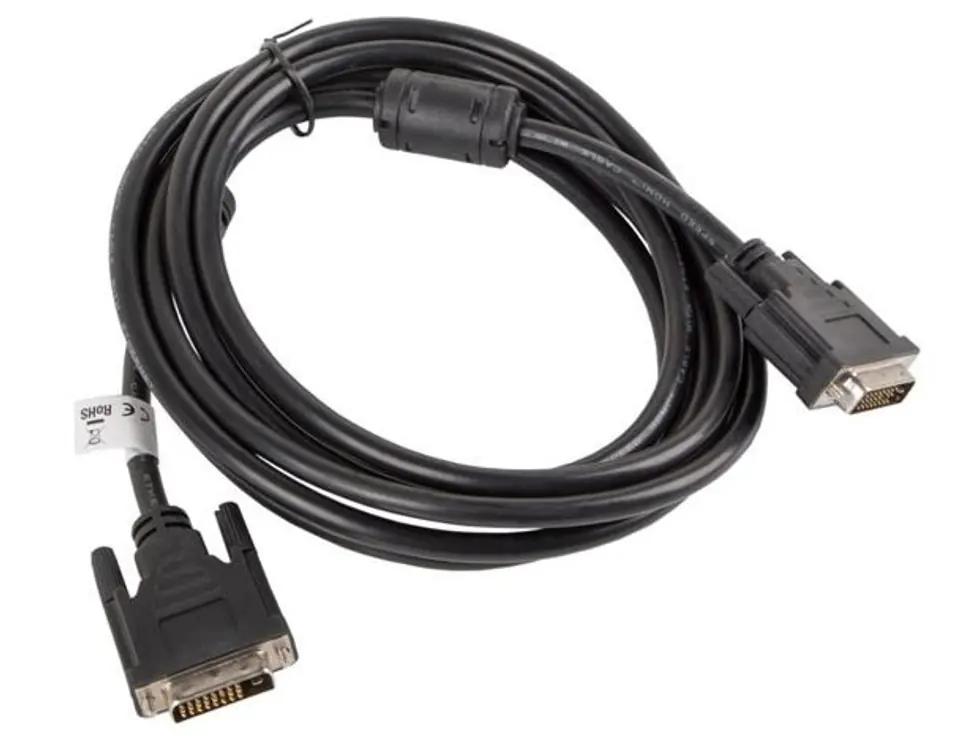DVI cable 3m 24+1 black Lanberg is an ideal solution for audiovisual transmission between multimedia devices such as computers, monitors, TVs, NAS, laptops, projectors, consoles. The cable is characterized by high quality of transmitted video and sound, as well as work efficiency. The cable will find its application both in the comfort of your home while watching your favorite series and movies, playing important games online, or working on important projects, and also ensures uninterrupted, good quality signal transmission during e.g. important company presentations.