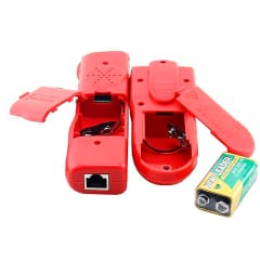 Along with the tester (transmitter and receiver) are included accessories such as RJ-11 telephone cable, RJ-45 ethernet cable, cable with jaw terminals (crocodile type), headphones, battery.