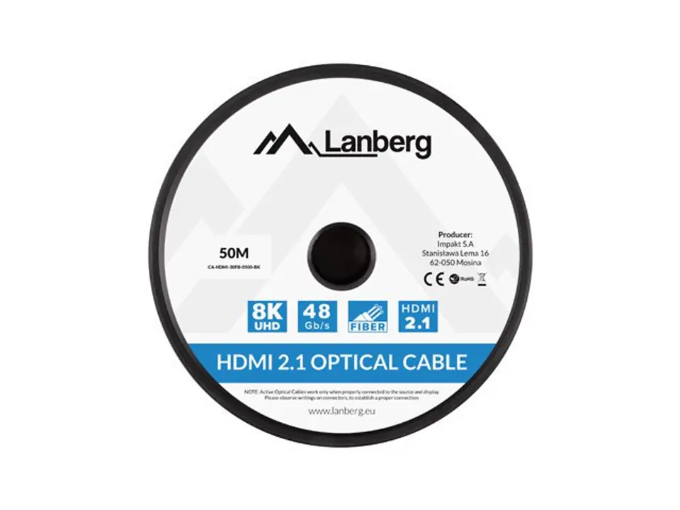CABLE HDMI M/M V2.1 50M 8K BLACK OPTICAL AOC LANBERG