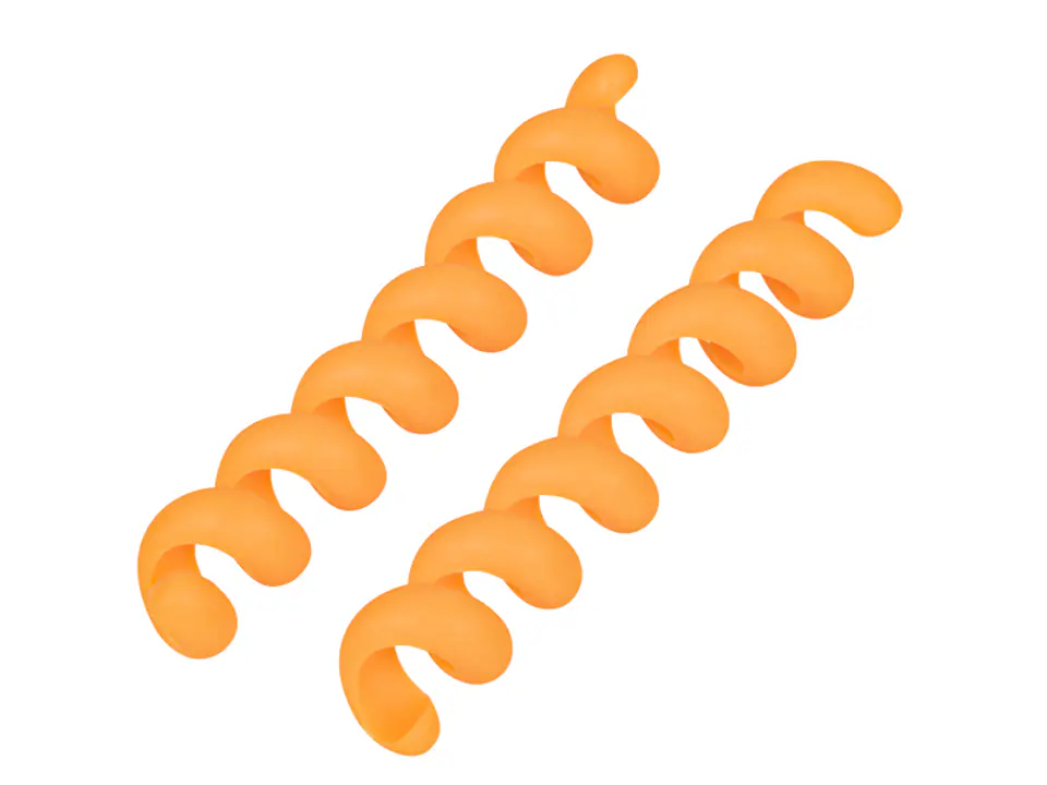 Cable organizer in the form of a flexible spring in orange. The product allows you to easily combine and organize several wires, cables and bands into one package. Made of flexible, damage-resistant plastic.