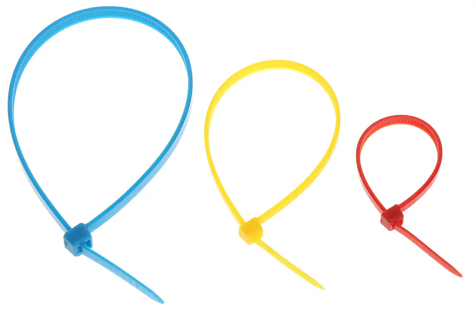 Nylon cable ties, thanks to their ease of assembly, very high tensile strength and high resistance to oil-derived substances, are widely used in electronics, ICT, construction, industrial automation, automotive and in many other areas of life for everyday use in the house or garage. They are ideal for fixing and clamping bundles of cables, wires, pipes and other elements without sharp edges. They can be used in a wide range of indoor and outdoor temperatures. They come in different sizes and colors so that we can more easily adapt them to our needs and can help us identify the right wiring harnesses. In our offer you will find a wide range of sizes and colors of nylon bands.