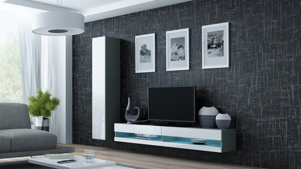 Cama Living room cabinet set VIGO NEW 9 grey/white gloss