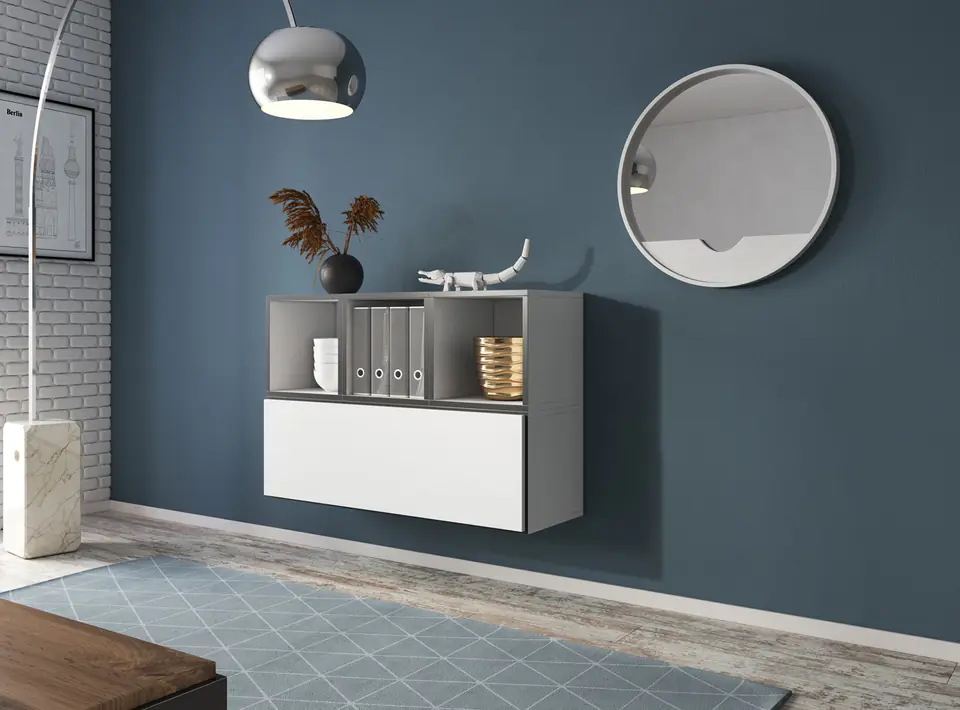 | Additional information: | Free-standing or wall-mounted cabinet, Laminated chipboard is resistant to mechanical stress and extreme temperatures, Self-assembly furniture, The pictures show an example of an arrangement of the set., It is possible to buy LED cabinet lighting. |