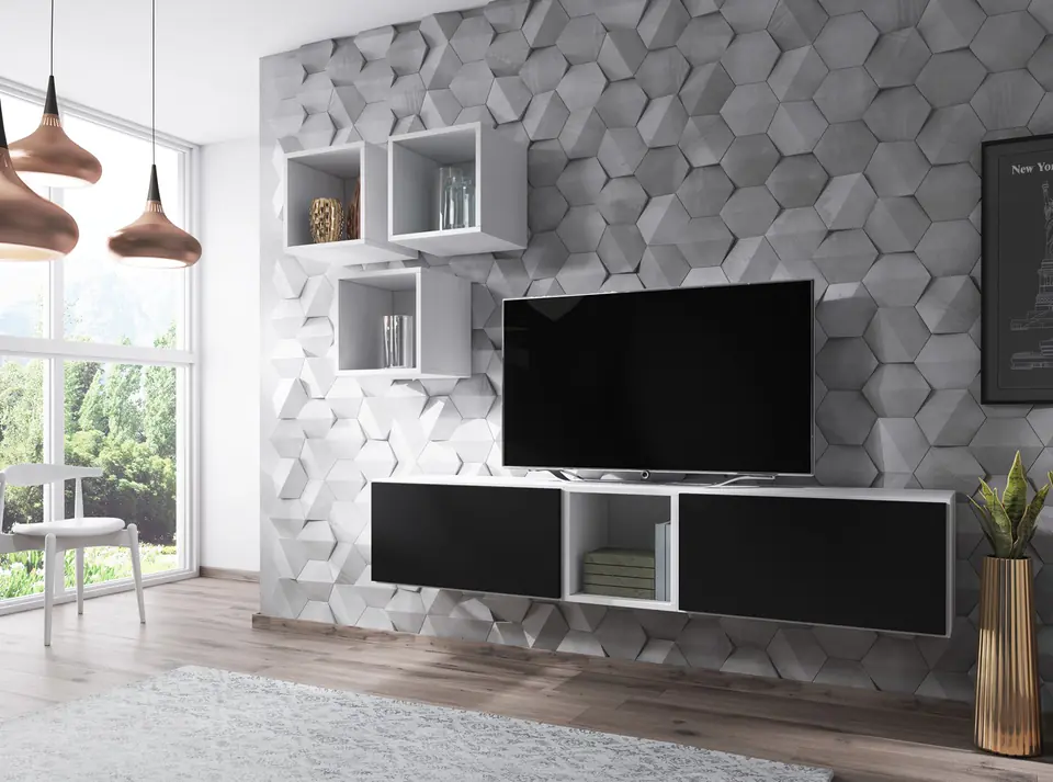 | Additional information: | It is possible to buy LED cabinet lighting., The height and width are approximate and take into account the gaps/overlaps between the blocks shown in the photo, Free-standing or wall-mounted cabinet, Cabinet RO-6: 37.5/37.5/39, one space - no shelf, Laminated chipboard is resistant to mechanical stress and extreme temperatures, Cabinet RO-3: 37,5/75/39 cm: one flap opens downwards or sideways (left/right), The photos of the inside of the cabinet show the anthracite/ wotan oak colour version and are for illustration only., Handle-free fronts, Self-assembly furniture, Accessories so called sliders included, The pictures show an example of an arrangement of the set., If the front is to open upwards, you need to purchase gas lifts on your own (1 pieces for one rectangle cabinet) |