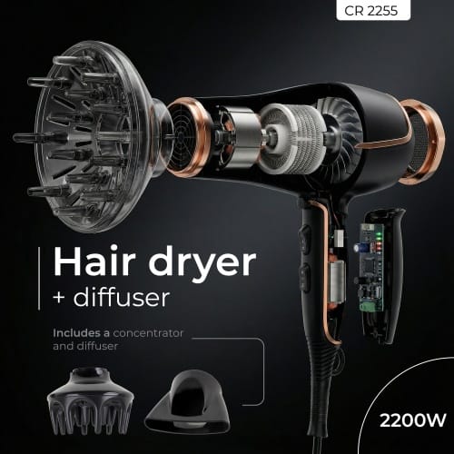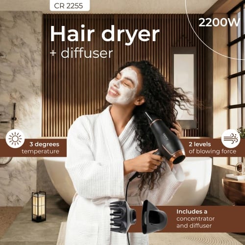 A hair dryer is an essential element of every home. When we want to buy a new one because, for example, the old one refused to cooperate, we have to decide which model will be the best. The CAMRY CR 2255 hair dryer with diffuser is the solution for us if we are looking for a high-quality product and want to give our hair a beautiful look with a minimum of effort.