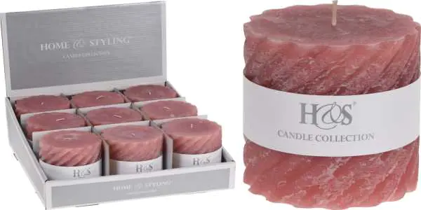 Candle twisted with rustic finish 10x9cm pink