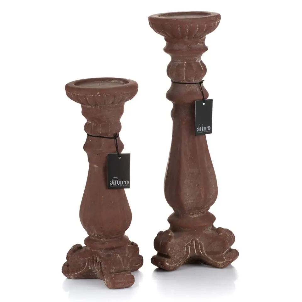 Candlesticks are deliberately aged by delicate concrete defects, imitating old damage and paint chips.