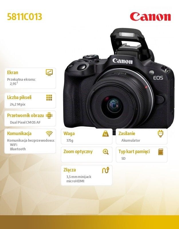 The compact design and ergonomic grip have been created with creatives in mind to allow them to shoot freely. Choose a camera that makes your work easier. At just 375g 1, the EOS R50 will not be a burden.