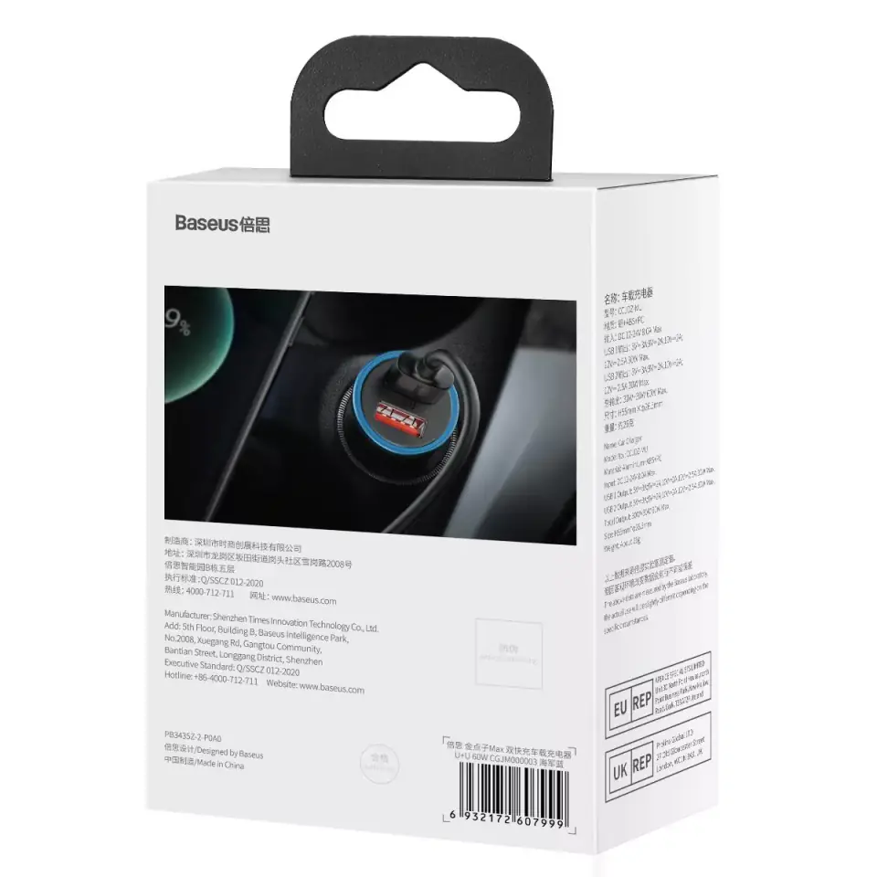 What else distinguishes the Baseus Golden Contactor Max charger? Universal compatibility with 12-24V vehicles So you can use it freely in a car, in a truck, in a bus or even in an excavator. What's more, the charger fits perfectly into most common cigarette lighter sockets - you will have no problem connecting it.