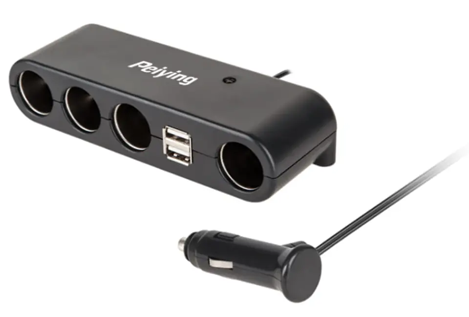 When driving a car, do you use a large number of devices that need constant access to electricity? The solution is the Peiying car cigarette lighter socket splitter, to which you can connect up to 6 different devices. The splitter has 4 cigarette lighter outputs and 2 USB ports, so you can easily connect GPS navigation, CB radio, portable TV or DVD or tourist fridge to it. The built-in USB port will allow you to charge your smartphone or tablet via a USB cable. This solidly made splitter will be irreplaceable in any car.