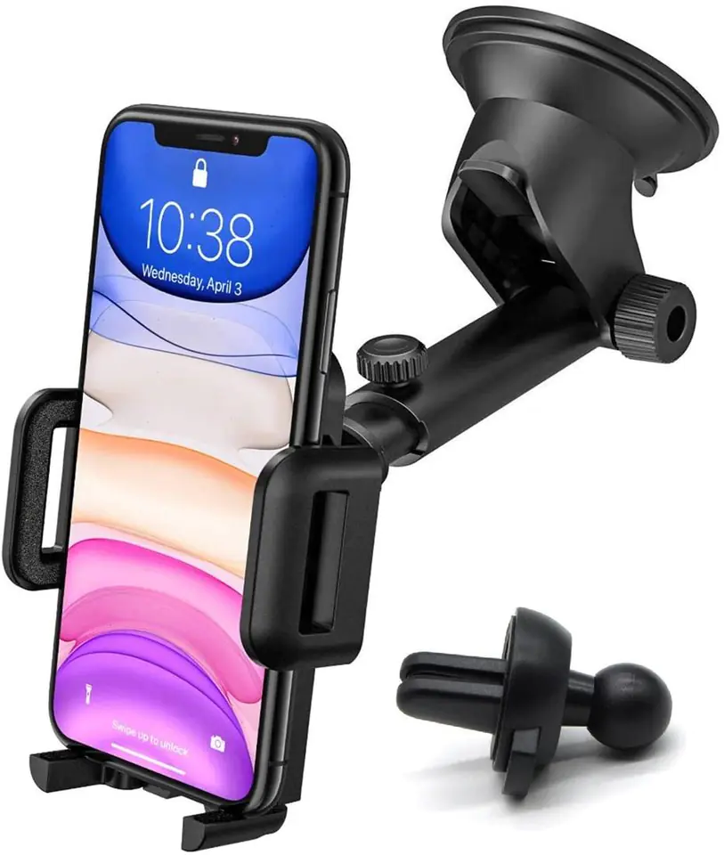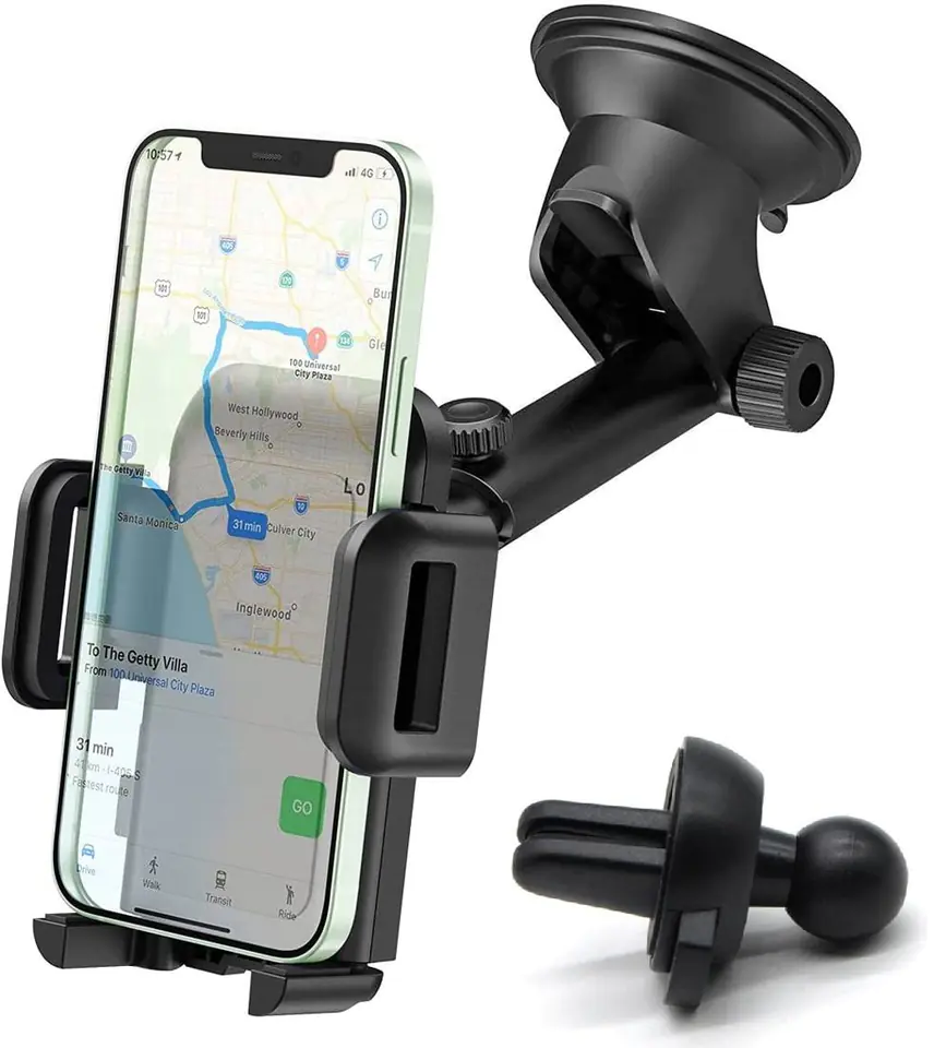Unique car holder for windshield or other smooth surface. Reliable on every trip, even when driving on bumpy roads, the phone holds steady in the holder. The reliability of the handle and the possibility of one-handed operation make it completely safe for every driver.