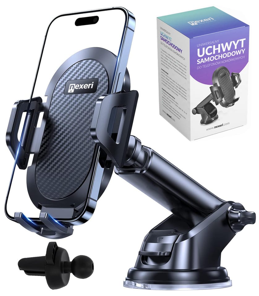 The holder is dedicated for devices with a minimum width of 65 mm and a maximum of 107 mm. The handle can be used both on the windshield of our vehicle (built-in gel suction cup) and on the cockpit - however, it should be remembered that the handle should not be used on leather surfaces.
