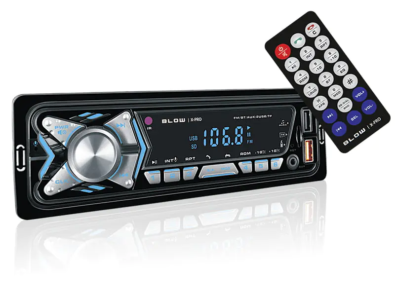 Modern and functional car radio BLOW X-PRO 1 is equipped with two USB inputs, microSD and AUX socket - this allows you to play music from portable devices and external memory as well as charge them. In addition, the radio has a Bluetooth module that allows you to stream music from your phone and make phone calls thanks to the hands-free function.